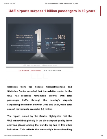 9/12/25, 3:55 PM UAE airports surpass 1 billion passengers in 10 years