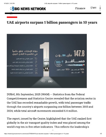 9/12/25, 3:56 PM UAE airports surpass 1 billion passengers in 10 years