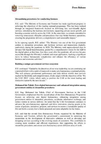 reduce routine in service delivery. He noted that the UAE Government continues to