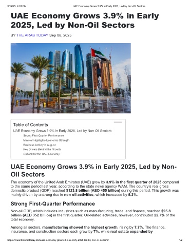 https://www.thearabtoday.com/uae-economy-grows-3-9-in-early-2025-led-by-non-oil-sectors/ 1/2