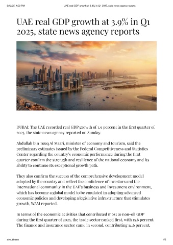 9/12/25, 4:02 PM UAE real GDP growth at 3.9% in Q1 2025, state news agency reports