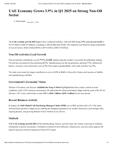 9/12/25, 4:02 PM UAE Economy Grows 3.9% in Q1 2025 on Strong Non-Oil Sector - Bizmart Media