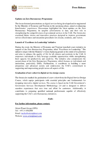 support of the Zero Bureaucracy Programme, titled “Excellence in Leadership.” The