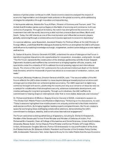 “The Hili Forum represents the continuation of the strategic partnership with the Anwar Gargash