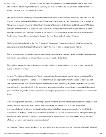 9/10/25, 4:27 PM Ministry of Economy and Tourism organises second Zero Bureaucracy Forum - Aletihad News Center