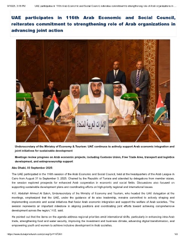 9/10/25, 3:18 PM UAE participates in 116th Arab Economic and Social Council, reiterates commitment to strengthening role of Arab organizations in …