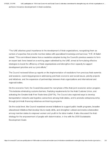 9/10/25, 3:19 PM UAE participates in 116th Arab Economic and Social Council, reiterates commitment to strengthening role of Arab organizations in …