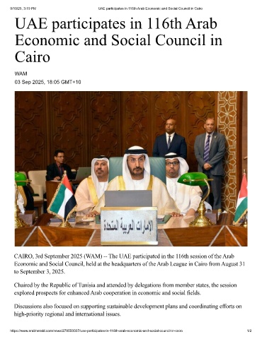 9/10/25, 3:19 PM UAE participates in 116th Arab Economic and Social Council in Cairo
