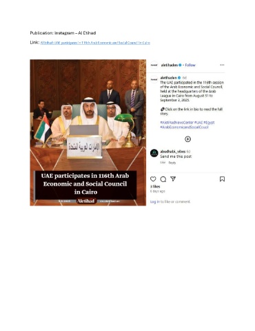 Publication: Instagram – Al Etihad Link: Al Etihad: UAE participates in 116th Arab Economic and Social Council in Cairo