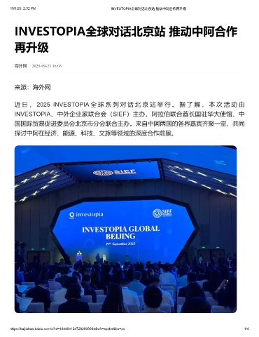 10/1/25, 2:32 PM INVESTOPIA全球对话北京站 推动中阿合作再升级