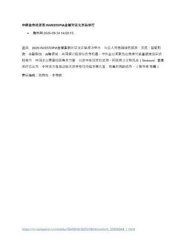 近日,2025 INVESTOPIA全球系列对话北京站成功举办,与会人员围绕绿色能源、文旅、智能制