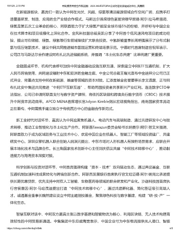 绿氢是第五次工业革命的核心,阿联酋致力于扩大绿氢产能至全球市场5%的份额,并呼吁与中国企业