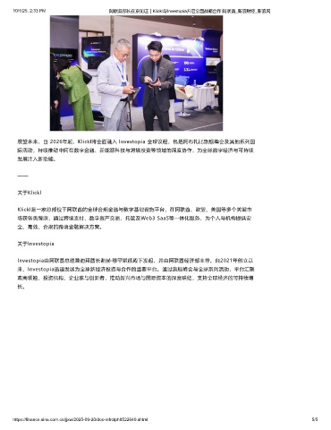 展望未来,自 2026年起,Klickl将全面融入 Investopia 全球议程,包括阿布扎比旗舰峰会及其他系列国