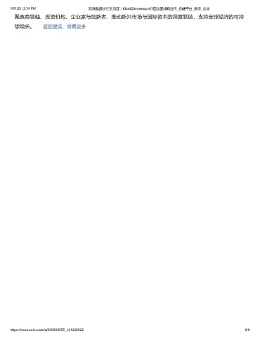 10/1/25, 2:34 PM 阿联酋部长在京见证|Klickl与Investopia开启全面战略合作_金融平台_数字_全球 聚政商领袖、投资机构、企业家与创新者,推动新兴市场与国际资本的深度联结,支持全球经济的可持 续增长。 返回搜狐,查看更多 https://news.sohu.com/a/936869555_121266922 8/8