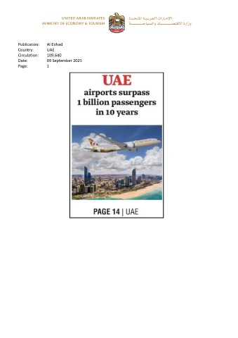 Publication: Al Etihad Country: UAE Circulation: 109,640 Date: 09 September 2025 Page: 1