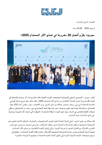 ﻟإ ﺔﻓﺎﺿﻹﺎﺑ ماﺪﺘﺴﻣ ﺮﺛأ تاذ ﻊﻳرﺎﺸﻣ ﺔﺛﻼﺛ ﻞﻀﻓﻷ ﻪﻤﻳﺮﺗ «ﺔﻴﻌﻤﺘﺠﻤﻟا ﺔﻴﻟوﺆﺴﻤﻠﻟ ﻨﻃﻮﻟا قوﺪﻨﺼﻟا – ىﺮﺠﻣ» ﻦﻠﻋأ