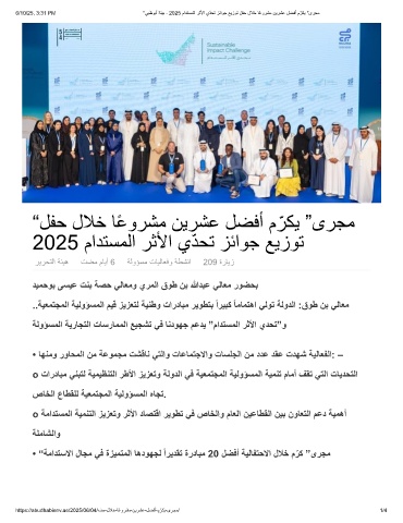 6/10/25, 3:31 PM "ﻲﺑظوﺑأ ﺔﺋﯾﺑ - 2025 مادﺗﺳﻣﻟا رﺛﻷا يّدﺣﺗ زﺋاوﺟ ﻊﯾزوﺗ لﻔﺣ لﻼﺧ ﺎًﻋورﺷﻣ نﯾرﺷﻋ لﺿﻓأ م ّ رﻛﯾ "ىرﺟﻣ