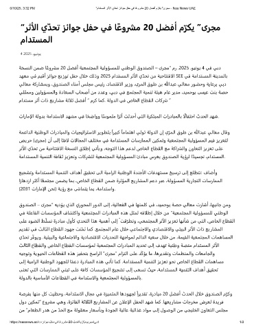 ﺔﺨﺴﻨﻟا ﻦﻤﺿ ﺎﻋورشﻣ 20 ﻞﻀﻓأ ﺔﻴﻌﻤﺘﺠﻤﻟا ﺔﻴﻟوﺆﺴﻤﻠﻟ ﻲﻨﻃﻮﻟا قوﺪﻨﺼﻟا – ىﺮﺠﻣ“ مر .2025 .ﻮﻴﻧﻮﻳ 4 ﻲﻓ ﻲﺑد