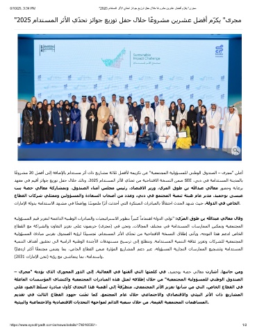 "2025 ماﺪﺘﺴﻤﻟا ﺮﺛﻷا يّﺪﺤﺗ ﺰﺋاﻮﺟ ﻊﻳزﻮﺗ ﻞﻔﺣ لﻼﺧ ﺎ ً ﻋوﺮﺸﻣ ﻦﻳﺮﺸﻋ ﻞﻀﻓأ مّﺮﻜﻳ "ىﺮﺠﻣ