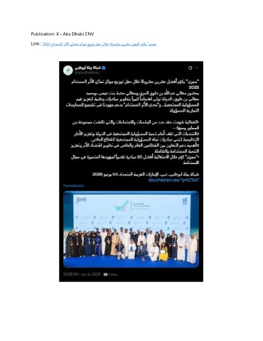 Publication: X – Abu Dhabi ENV ّ ً ّ Link: “2025 مادتسلما رثلأا يدحت زئاوج عيزوت لفح للاخ اعورشم نيرشع لضفأ مركي ”ىرجم