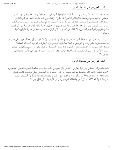 ﺮﮭﺸﻟا ﻰﻘﯿﺳﻮﻤﻟا قﻮﻘﺤﻟ تارﺎﻣﻹا ﺔﯿﻌﻤﺠﻟ ﻰﻘﯿﺳﻮﻤﻠﻟ ﺔﯿﻌﻤﺠﻟا ةرادﻺﻟ ﺔﺼﺧر لوأ ةرازﻮﻟا ﺖﺤﻨﻣ“:ﮫﺗدﺎﻌﺳ ﻊﺑﺎﺗو