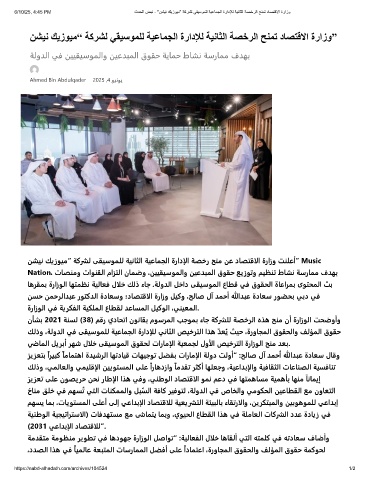 يضﺎﻤﻟا ﻞﻳﺮﺑأ ﺮﻬﺷ لالﺧ ﻰﻘﻴﺳﻮﻤﻟا قﻮﻘﺤﻟ تارﺎﻣإلا ﺔﻴﻌﻤﺠﻟ لوألا ﺺﻴﺧﺮﺘﻟا ةرازﻮﻟا ﺢﻨﻣ ﺪﻌﺑ.