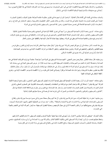 ،ةروﺎﺠﻤﻟا قﻮﻘﺤﻟاو ﻒﻟﺆﻤﻟا قﻮﻘﺣ ﺔﻤﻛﻮﺤﻟ ﺔﻣﺪﻘﺘﻣ ﺔﻣﻮﻈﻨﻣ ﺮﯾﻮﻄﺗ ﻲﻓ ﺎھدﻮﮭﺟ ةرازﻮﻟا ﻞﺻاﻮﺗ“ :ﺔﯿﻟﺎﻌﻔﻟا لﻼﺧ ﺎھﺎﻘﻟأ ﻲﺘﻟا ﮫﺘﻤﻠﻛ ﻲﻓ ﮫﺗدﺎﻌﺳ فﺎﺿأو