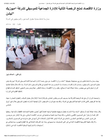 ﻞﯾﺮﺑأ ﺮﮭﺷ لﻼﺧ ﻰﻘﯿﺳﻮﻤﻟا قﻮﻘﺤﻟ تارﺎﻣﻹا ﺔﯿﻌﻤﺠﻟ لوﻷا ﺺﯿﺧﺮﺘﻟا ةرازﻮﻟا ﺢﻨﻣ ﺪﻌﺑ ﻚﻟذو ،ﺔﻟوﺪﻟا ﻲﻓ ﻰﻘﯿﺳﻮﻤﻠﻟ ﺔﯿﻋﺎﻤﺠﻟا ةرادﻺﻟ ﻲﻧﺎﺜﻟا ﺺﯿﺧﺮﺘﻟا اﺬھ ّﺪﻌُﯾ