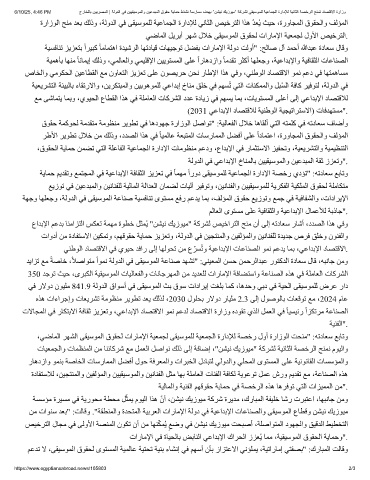 ،ﻲﺿﺎﻤﻟا ﺮﮭﺸﻟا ﻰﻘﯿﺳﻮﻤﻟا قﻮﻘﺤﻟ تارﺎﻣﻹا ﺔﯿﻌﻤﺠﻟ ﻰﻘﯿﺳﻮﻤﻠﻟ ﺔﯿﻌﻤﺠﻟا ةرادﻺﻟ ﺔﺼﺧر لوأ ةرازﻮﻟا ﺖﺤﻨﻣ" :ﮫﺗدﺎﻌﺳ ﻊﺑﺎﺗو