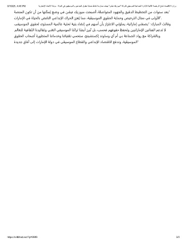 ،ﻰﻘﻴﺳﻮﻤﻟا قﻮﻘﺤﻟ ىﻮﺘﺴﻤﻟا ﺔﻴﻤﻟﺎﻋ ﺔﻴﺘﺤﺗ ﺔﻴﻨﺑ ءﺎﺸﻧإ ﻲﻓ ﻢﻬﺳأ نﺄﺑ زاﺰﺘﻋالا ﻲﻧﺆﻠﻤﻳ ،ﺔﻴﺗارﺎﻣإ ﻲﺘﻔﺼﺑ“ :كرﺎﺒﻤﻟا ﺖﻟﺎﻗو