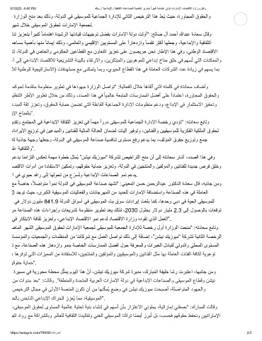 ﺿﺎﻣﻟا رﮭﺷﻟا ﻰﻘﯾﺳوﻣﻟا قوﻘﺣﻟ تارﺎﻣﻹا ﺔﯾﻌﻣﺟﻟ ﻰﻘﯾﺳوﻣﻠﻟ ﺔﯾﻌﻣﺟﻟا ةرادﻺﻟ ﺔﺻﺧر لوأ ةرازوﻟا تﺣﻧﻣ“ :ﮫﺗدﺎﻌﺳ ﻊﺑﺎﺗو