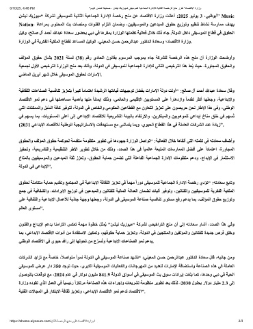ﻦﺸﯿﻧ ﻚﯾزﻮﯿﻣ“ ﺔﻛﺮﺸﻟ ﻰﻘﯿﺳﻮﻤﻠﻟ ﺔﯿﻧﺎﺜﻟا ﺔﯿﻋﺎﻤﺠﻟا ةرادﻹا ﺔﺼﺧر ﺢﻨﻣ ﻦﻋ دﺎﺼﺘﻗﻻا ةرازو ﺖﻨﻠﻋأ :2025 ﻮﯿﻧﻮﯾ 3 ،ﻲﺒظﻮﺑأ” Music