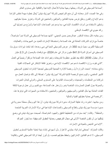 ةدﺣﺗﻣﻟا ﺔﯾﺑرﻌﻟا تارﺎﻣﻹا ﺔﻟود ﻲﻓ ﺔﯾﻋادﺑﻹا تﺎﻋﺎﻧﺻﻟاو ﻰﻘﯾﺳوﻣﻟا عﺎطﻗو نﺷﯾﻧ كﯾزوﯾﻣ ﺔﺳﺳؤﻣ ةرﯾﺳﻣ