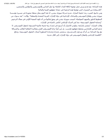 ﻻ ،ﻰﻘﯿﺳﻮﻤﻟا قﻮﻘﺤﻟ ىﻮﺘﺴﻤﻟا ﺔﯿﻤﻟﺎﻋ ﺔﯿﺘﺤﺗ ﺔﯿﻨﺑ ءﺎﺸﻧإ ﻲﻓ ﻢﮫﺳأ نﺄﺑ زاﺰﺘﻋﻻا ﻲﻧﺆﻠﻤﻳ ،ﺔﯿﺗارﺎﻣإ ﻲﺘﻔﺼﺑ“ :كرﺎﺒﻤﻟا ﺖﻟﺎﻗو