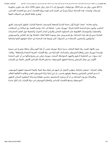 ةﺪﻳﺪﺟ قﺎﻓآ ﻰﻟإ تارﺎﻣإلا ﺔﻟود ﻲﻓ ﻲﻘﻴﺳﻮﻤﻟا عﺎﻄﻘﻟاو ﻲﻋاﺪﺑإلا دﺎﺼﺘﻗالا ﻊﻓﺪﺗو ،ﺔﻴﻘﻴﺳﻮﻤﻟا”.