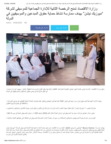 نﺷﯾﻧ كﯾزوﯾﻣ“ ﺔﻛرﺷﻟ ﻰﻘﯾﺳوﻣﻠﻟ ﺔﯾﻧﺎﺛﻟا ﺔﯾﻋﺎﻣﺟﻟا ةرادﻹا ﺔﺻﺧر ﺢﻧﻣ نﻋ دﺎﺻﺗﻗﻻا ةرازو تﻧﻠﻋأ :2025 وﯾﻧوﯾ 3 ،ﻲﺑظوﺑأ” Music Nation، ﺔﺳرﺎﻣﻣ فدﮭﺑ