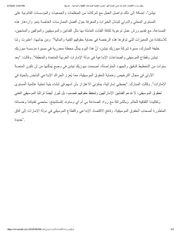 قﺎﻓآ ﻰﻟإ تارﺎﻣﻹا ﺔﻟود ﻲﻓ ﻲﻘﯾﺳوﻣﻟا عﺎطﻘﻟاو ﻲﻋادﺑﻹا دﺎﺻﺗﻗﻻا ﻊﻓدﺗو ،ﺔﯾﻘﯾﺳوﻣﻟا قوﻘﺣﻟا بﺎﺣﺻأ ةروطﺗﻣﻟا