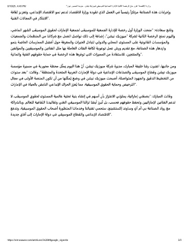 ال ،ﻰﻘﻴﺳﻮﻤﻟا قﻮﻘﺤﻟ ىﻮﺘﺴﻤﻟا ﺔﻴﻤﻟﺎﻋ ﺔﻴﺘﺤﺗ ﺔﻴﻨﺑ ءﺎﺸﻧإ ﻲﻓ ﻢﻬﺳأ نﺄﺑ زاﺰﺘﻋالا ﻲﻧﺆﻠﻤﻳ ،ﺔﻴﺗارﺎﻣإ ﻲﺘﻔﺼﺑ“ :كرﺎﺒﻤﻟا ﺖﻟﺎﻗو