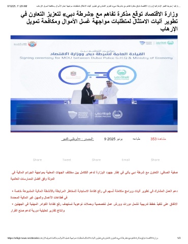 6/12/25, 11:29 AM بﺎھرﻹا لﯾوﻣﺗ ﺔﺣﻓﺎﻛﻣو لاوﻣﻷا لﺳﻏ ﺔﮭﺟاوﻣ تﺎﺑﻠطﺗﻣﻟ لﺎﺛﺗﻣﻻا تﺎﯾﻟآ رﯾوطﺗ ﻲﻓ نوﺎﻌﺗﻟا زﯾزﻌﺗﻟ «ﻲﺑد ﺔطرﺷ» ﻊﻣ مھﺎﻔﺗ ةرﻛذﻣ ﻊﻗوﺗ دﺎﺻﺗﻗﻻا ةرازو | ﮫﯾﺗارﺎﻣﻹا رﺟﻔﻟا ةدﯾرﺟ | ﮫﯾﺗارﺎ…