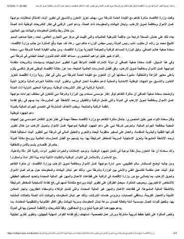 مھﺎﻔﺗﻟا ةرﻛذﻣ نأ ،دﺎﺻﺗﻗﻻا ةرازوﺑ بﺎھرﻹا لﯾوﻣﺗ ﺔﺣﻓﺎﻛﻣو لاوﻣﻷا لﺳﻏ ﺔﮭﺟاوﻣ ةرادإ رﯾدﻣ ،ﻲﺟﯾﻧطﻟا مﻟﺎﺳ رﺎﺷﺗﺳﻣﻟا ﺢﺿوأ ﮫﺑﻧﺎﺟ نﻣو