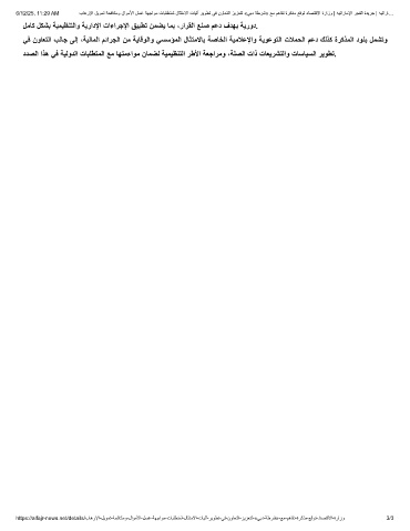 ﻲﻓ نوﺎﻌﺗﻟا بﻧﺎﺟ ﻰﻟإ ،ﺔﯾﻟﺎﻣﻟا مﺋارﺟﻟا نﻣ ﺔﯾﺎﻗوﻟاو ﻲﺳﺳؤﻣﻟا لﺎﺛﺗﻣﻻﺎﺑ ﺔﺻﺎﺧﻟا ﺔﯾﻣﻼﻋﻹاو ﺔﯾوﻋوﺗﻟا تﻼﻣﺣﻟا مﻋد كﻟذﻛ ةرﻛذﻣﻟا دوﻧﺑ لﻣﺷﺗو