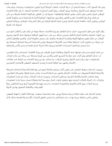 ﻞﻳﻮﻤﺗو لاﻮﻣألا ﻞﺴﻏ ﺔﻬﺟاﻮﻤﻟ ﺔﻴﻨﻃﻮﻟا دﻮﻬﺠﻟا ﻢﻋد ﻰﻠﻋ ﻲﺑد ﺔﻃرش صﺮﺤﺗو ،ﺔﻴﻟﺎﻤﻟا ﻢﺋاﺮﺠﻟا ﺔﺤﻓﺎﻜﻤﺑ ﺔﻴﻨﻌﻤﻟا تﺎﻬﺠﻟا ﻦﻴﺑ