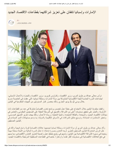6/10/25, 2:20 PM دﯾدﺟﻟا دﺎﺻﺗﻗﻻا تﺎﻋﺎطﻘﺑ ﺎﻣﮭﺗﻛارﺷ زﯾزﻌﺗ ﻰﻠﻋ نﺎﻘﻔﺗﺗ ﺎﯾﻧﺎﺑﺳإو تارﺎﻣﻹا