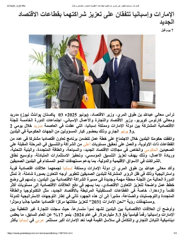دﺎﺼﺘﻗﻻا تﺎﻋﺎﻄﻘﺑ ﺎﻤﮭﺘﻛاﺮﺷ ﺰﯾﺰﻌﺗ ﻰﻠﻋ نﺎﻘﻔﺘﺗ ﺎﯿﻧﺎﺒﺳإو تارﺎﻣﻹا