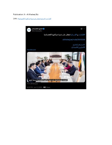 Publication: X – Al Khaleej Biz Link: #ةيداصتقلاا امهتكارش ةيمنت ىلع ناقفتت اينابسإ# و تاراملإا