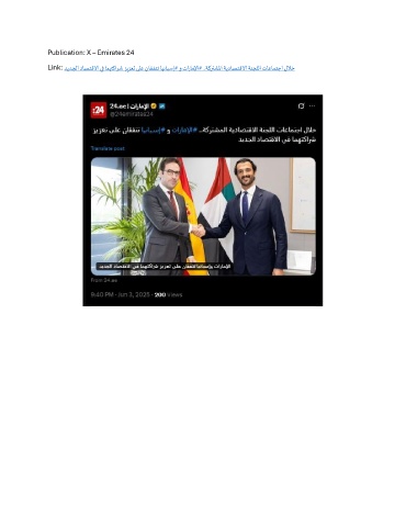 Publication: X – Emirates 24 Link: ديدجلا داصتقلاا يف امهتكارش زيزعت ىلع ناقفتت اينابسإ# و تاراملإا# ..ةكرتشلما ةيداصتقلاا ةنجللا تاعامتجا للاخ