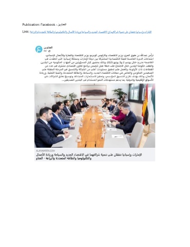 Publication: Facebook - نيوانعلا Link: ةعارزلاو ةددجتلما ةقاطلاو ايجولونكتلاو لامعلأا ةدايرو ةحايسلاو ديدجلا داصتقلاا يف امهتكارش ةيمنت ىلع ناقفتت اينابسإو تاراملإا