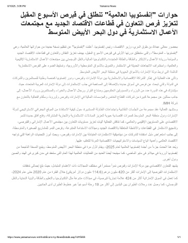 دﯾدﺟﻟا دﺎﺻﺗﻗﻻا تﺎﻋﺎطﻗ ﻲﻓ نوﺎﻌﺗﻟاو شﺎﻘﻧﻟا زﯾزﻌﺗ فدﮭﺑ ،لﺑﻘﻣﻟا عوﺑﺳﻷا صرﺑﻗ ﻲﻓ ﻰﻟوﻷا ﺎﮭﺗرود ﻖﻠطﻧﺗﺳ ﻲﺗﻟاو ،"طﺳوﺗﻣﻟا - ﺎﯾﺑوﺗﺳﻔﻧإ"