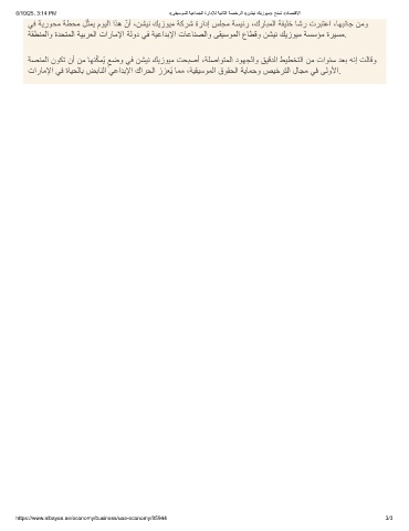 ﺔﻘطﻧﻣﻟاو ةدﺣﺗﻣﻟا ﺔﯾﺑرﻌﻟا تارﺎﻣﻹا ﺔﻟود ﻲﻓ ﺔﯾﻋادﺑﻹا تﺎﻋﺎﻧﺻﻟاو ﻰﻘﯾﺳوﻣﻟا عﺎطﻗو نﺷﯾﻧ كﯾزوﯾﻣ ﺔﺳﺳؤﻣ ةرﯾﺳﻣ.
