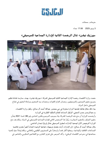 .ﺿﺎﻤﻟا نﺎﺴﻴﻧ /ﻞﻳﺮﺑإ لﻼﺧ ﻘﻴﺳﻮﻤﻟا قﻮﻘﺤﻟ تارﺎﻣﻹا ﺔﻴﻌﻤﺠﻟ لوﻷا ﺺﻴﺧﺮﺘﻟا ةرازﻮﻟا